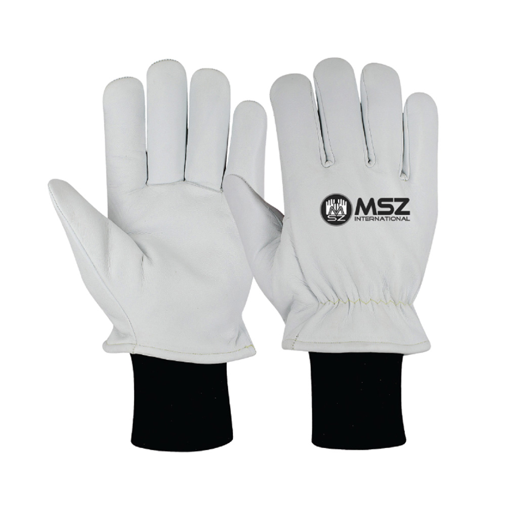 Driver Gloves Palm & Back made of Cowhide Grey color Leather, Inside full Fleece Lining With Knit wrist cuff protection.